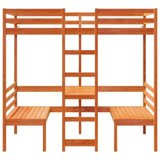 Dvignjeni Postelja za odrasle - Posteljni Okvir z mizo, stoli rjav 90x200 cm borovina