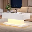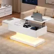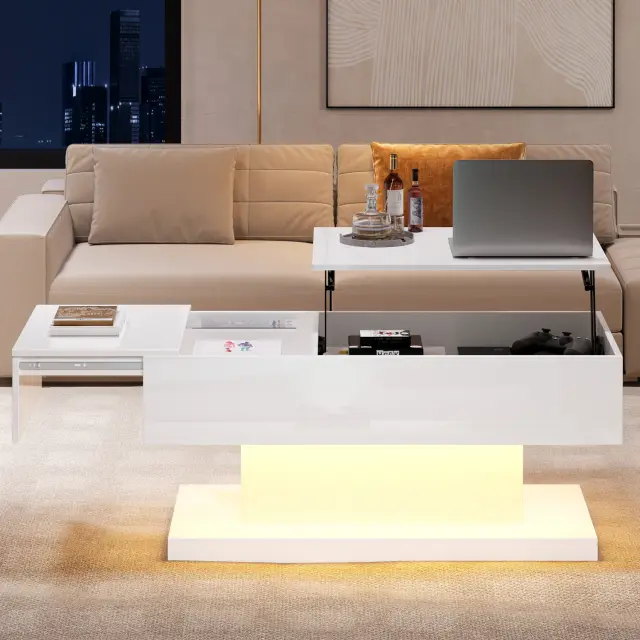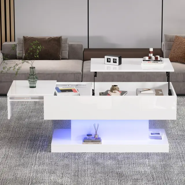 Dvižna čajna mizica z visokim sijajem in LED osvetlitvijo, 100x50x45 cm, delno dvižna, s prostorom za shranjevanje