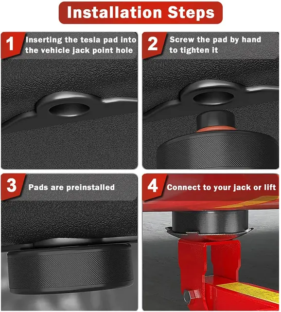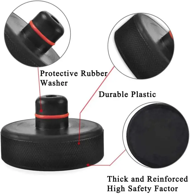 Dvižna plošča je zasnovana tako, da deluje z edinstvenimi dvižnimi točkami na šasiji avtomobila. Izdelan iz trpežne gume, ki ima blažilni učinek in ima visoko nosilno moč. Dvižne plošče so dostavljene v paketu po 4 v praktični torbi za shranjevanje.