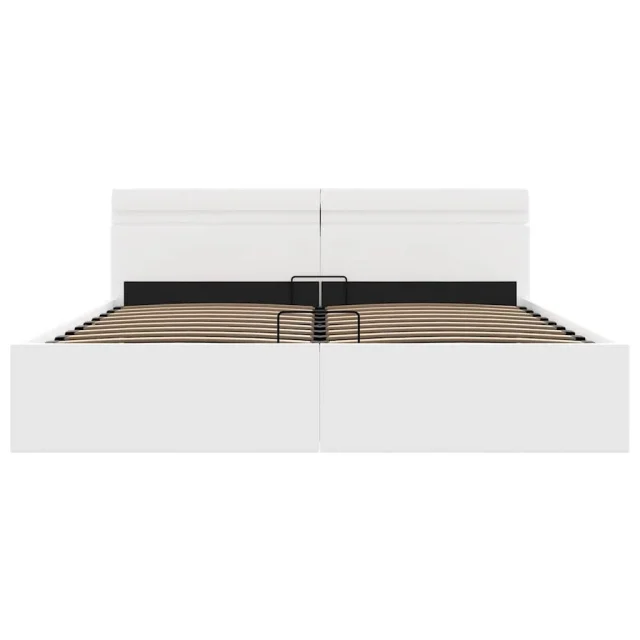 Dvižni Posteljni okvir - Dvoposteljna postelja - Zakonska postelja LED belo umetno usnje 160x200 cm