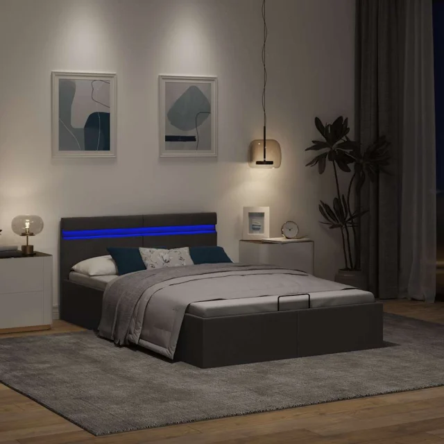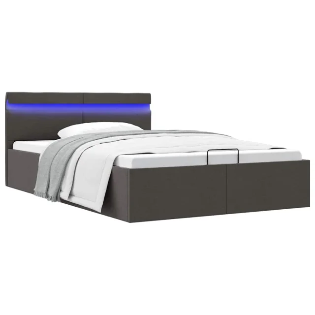 Dvižni Posteljni okvir - Dvoposteljna postelja - Zakonska postelja LED temno sivo blago 140x200 cm