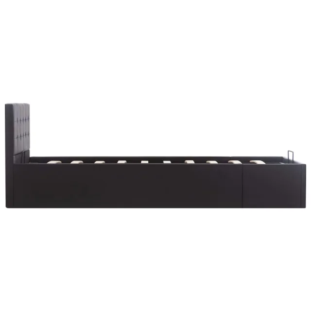 Prašno premazan jeklen okvir in letvice iz borovine postelji dodajajo trdnost in trpežnost. Oblečena je v sijoče umetno usnje, zato ta postelja s prostorom za shranjevanje izgleda vabljivo ter omogoča enostavno vzdrževanje. To pohištvo za spalnico je primerno za vzmetnico velikosti 100 x 200 cm.