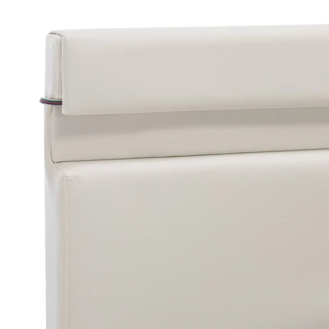 Prašno barvan jeklen okvir in vezane letve so še bolj trdni in vzdržljivi. Ta postelja za shranjevanje, oblazinjena v svetleče umetno usnje, izgleda privlačno in je enostavna za vzdrževanje. To pohištvo za spalnico je primerno za ležišče velikosti 90 x 200 cm. To posteljo odlikuje LED osvetlitev, ki jo je mogoče preprosto nastaviti in tako ustvariti posebno svetlobno predstavo. Prilagodite lahko načine, barve in svetlost ter tako izboljšate vzdušje v notranjem prostoru. Ta izdelek je preprost za montažo.