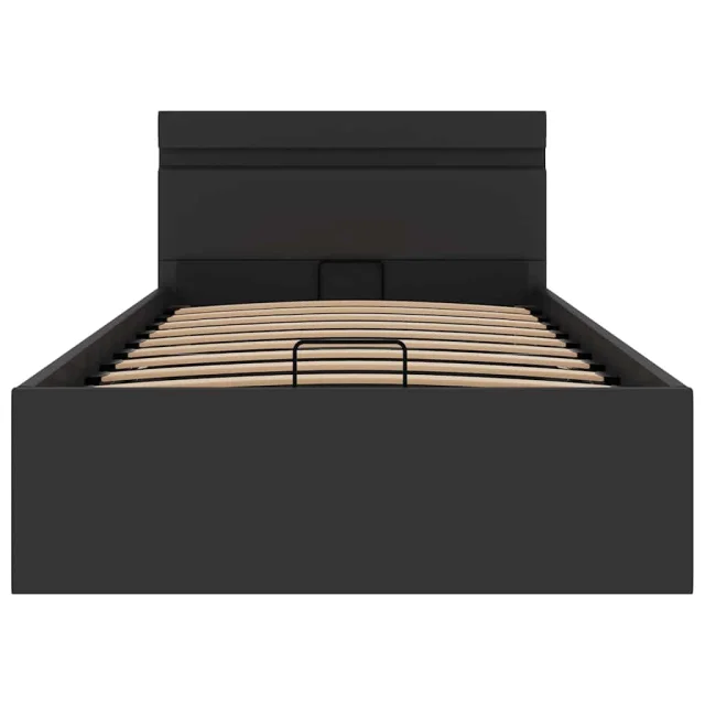 Prašno barvan jeklen okvir in vezane letve so še bolj trdni in vzdržljivi. Ta postelja za shranjevanje, oblazinjena v svetleče umetno usnje, izgleda privlačno in je enostavna za vzdrževanje. To pohištvo za spalnico je primerno za ležišče velikosti 90 x 200 cm. To posteljo odlikuje LED osvetlitev, ki jo je mogoče preprosto nastaviti in tako ustvariti posebno svetlobno predstavo. Prilagodite lahko načine, barve in svetlost ter tako izboljšate vzdušje v notranjem prostoru. Ta izdelek je preprost za montažo.