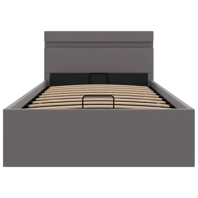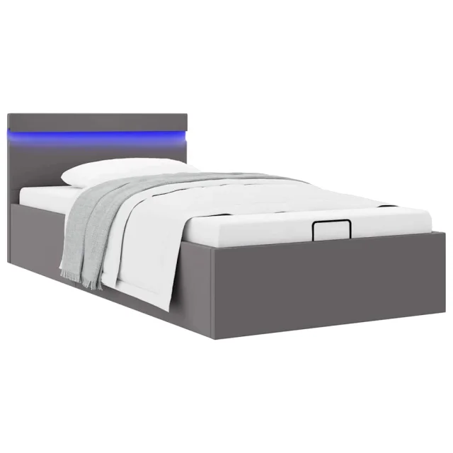 Dvižni Posteljni okvir - Enojna postelja - Postelja za odrasle LED sivo umetno usnje 90x200 cm
