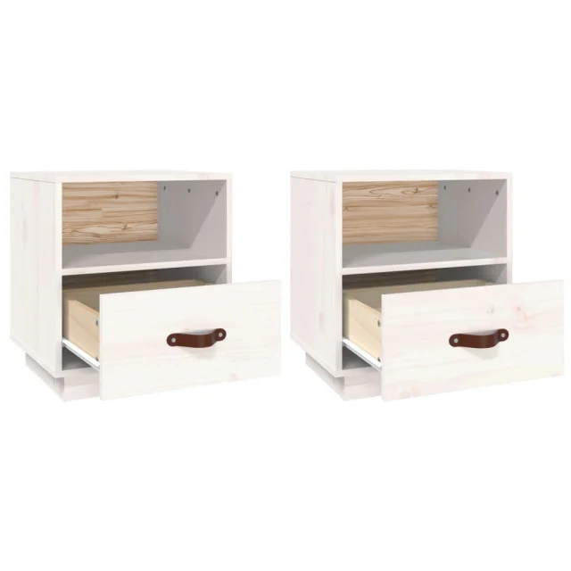 Dvo delni komplet Nočne omarice - Nočne mize bela 40x34x45 cm trdna borovina