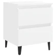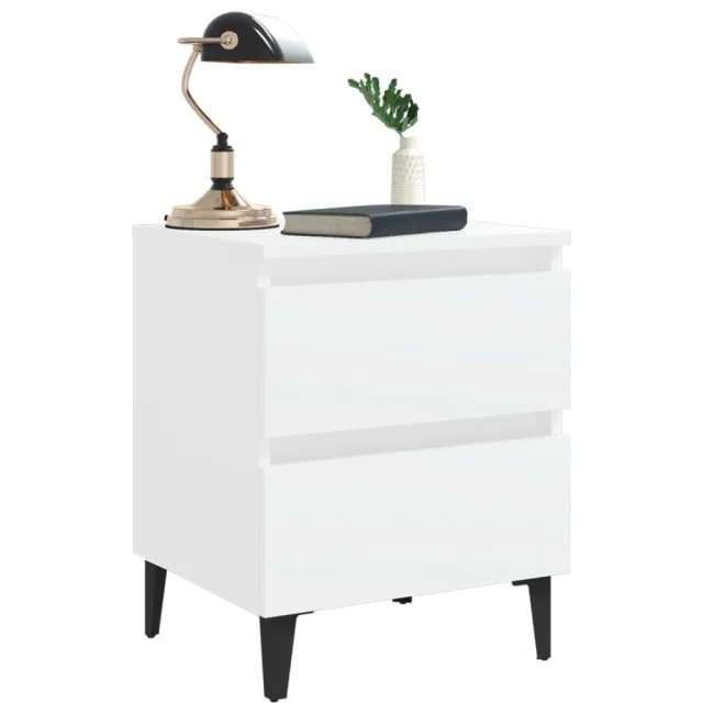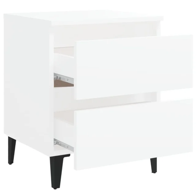Ta nočna omarica s štirimi kovinskimi nogami je stabilna in močna. Nočna omarica za spalnico je opremljena z dvema predaloma, ki ponujata veliko prostora za urejeno in organizirano shranjevanje stvari. Preprosto jo lahko očistite z vlažno krpo.