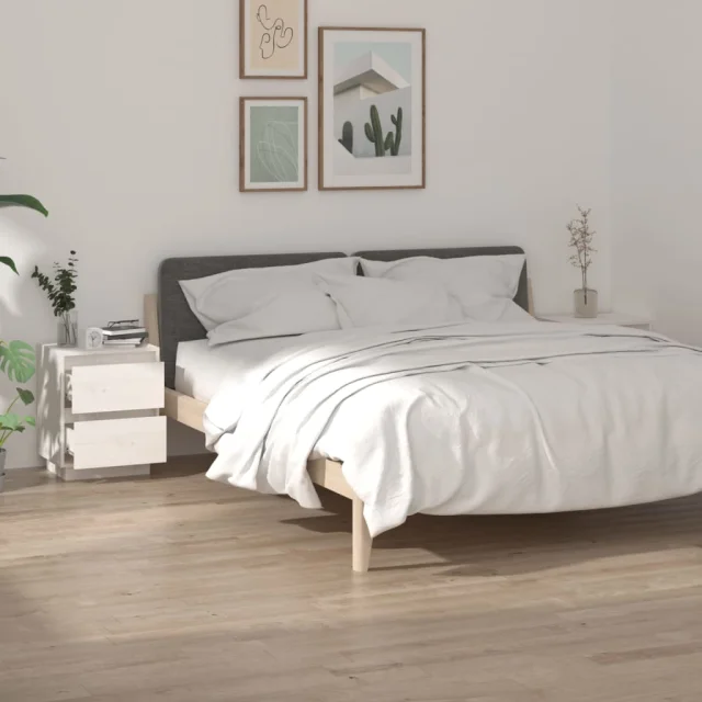 Dvo delni komplet Nočne omarice - Nočne mize bela 40x35x50 cm trdna borovina