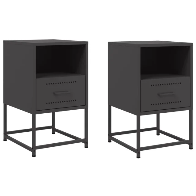 Dvo delni komplet Nočne omarice - Nočne mize črna 36x39x60,5 cm jeklo