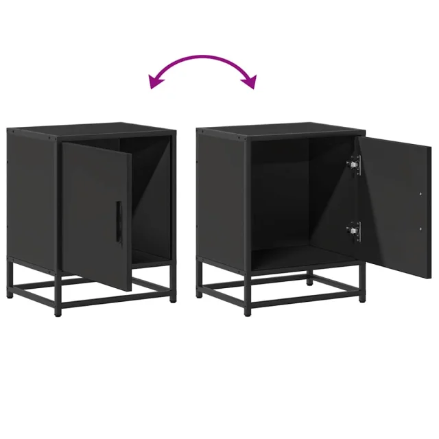 Dvo delni komplet Nočne omarice - Nočne mize črna 40x31x50 cm inž. les in kovina