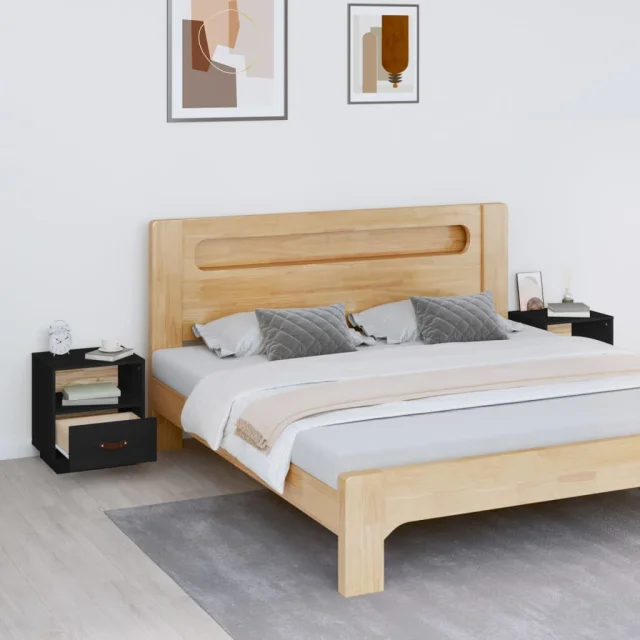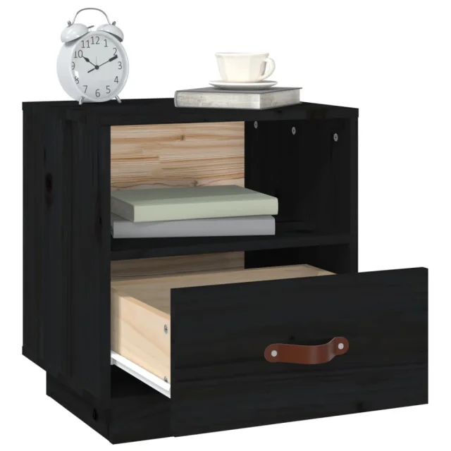 Dvo delni komplet Nočne omarice - Nočne mize črna 40x34x45 cm trdna borovina