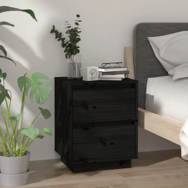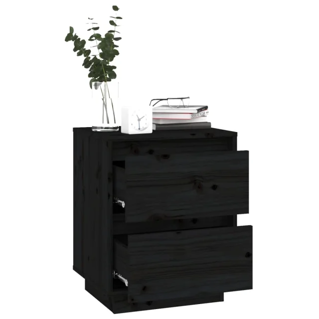 Dvo delni komplet Nočne omarice - Nočne mize črna 40x35x50 cm trdna borovina