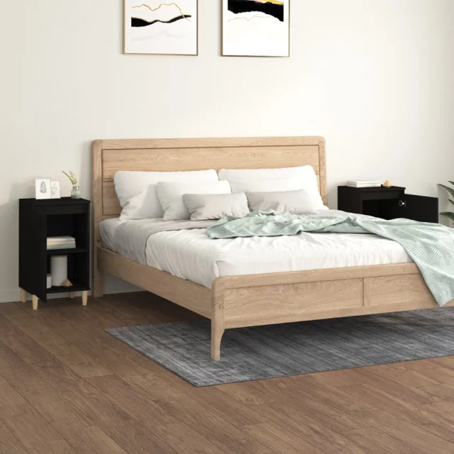 Dvo delni komplet Nočne omarice - Nočne mize črna 40x35x70 cm inženirski les