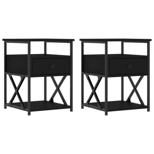 Dvo delni komplet Nočne omarice - Nočne mize črna 40x42x55 cm inženirski les