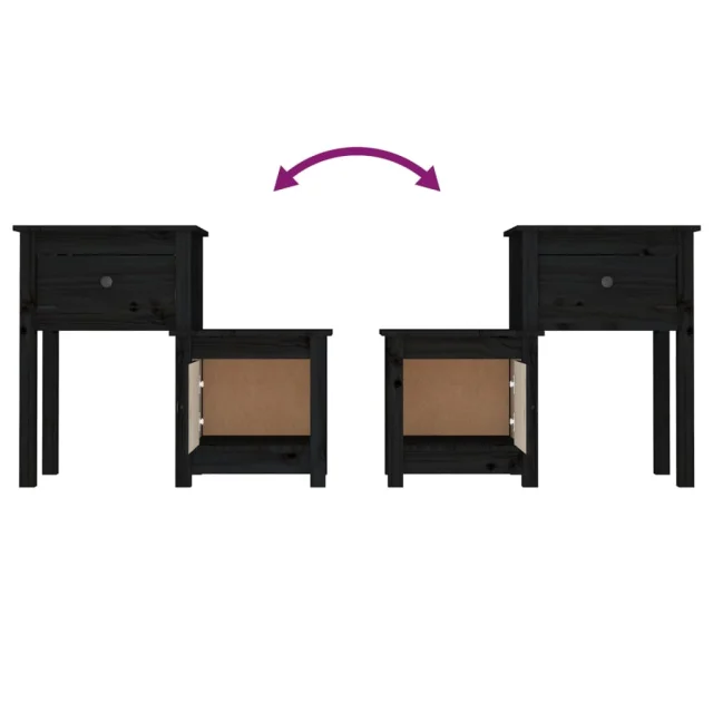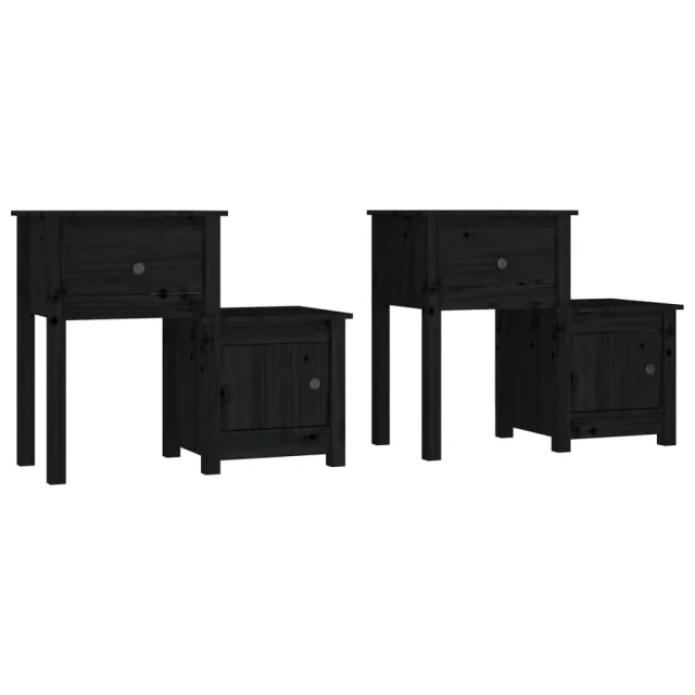 Dvo delni komplet Nočne omarice - Nočne mize črna 79,5x38x65,5 cm trdna borovina