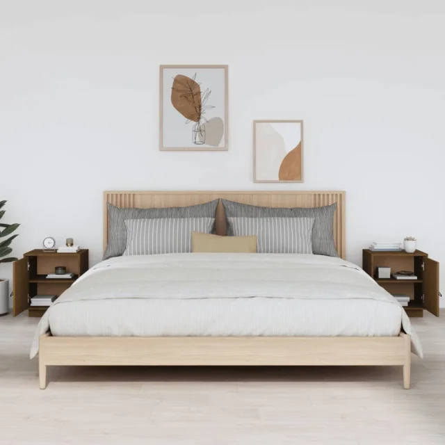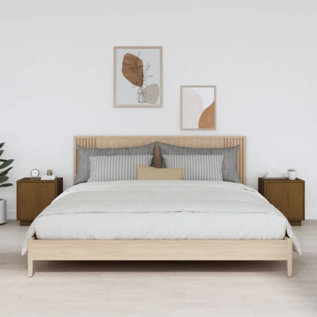 Dvo delni komplet Nočne omarice - Nočne mize medeno rjava 40x34x45 cm trdna borovina