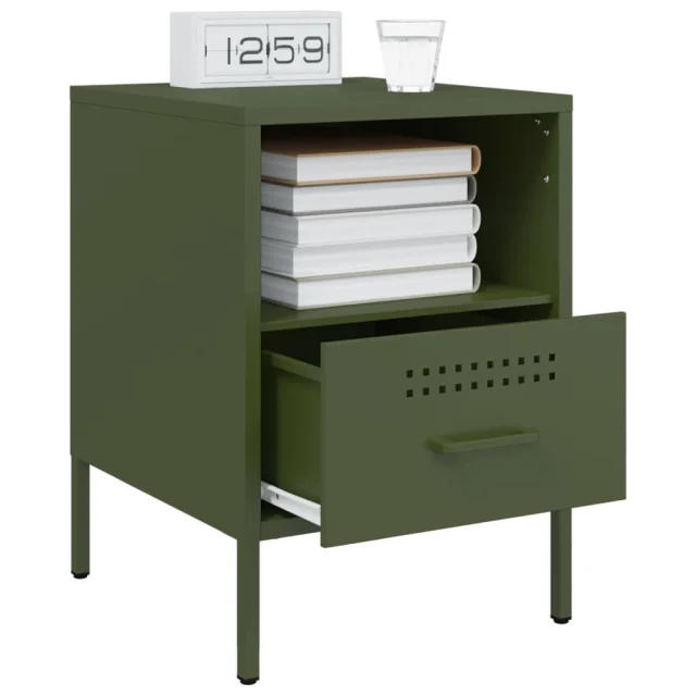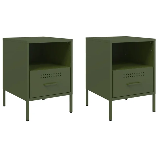 Dvo delni komplet Nočne omarice - Nočne mize olivno zelena 36x39x50,5 cm jeklo