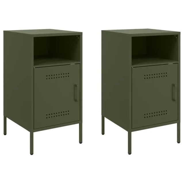 Dvo delni komplet Nočne omarice - Nočne mize olivno zelena 36x39x68 cm jeklo