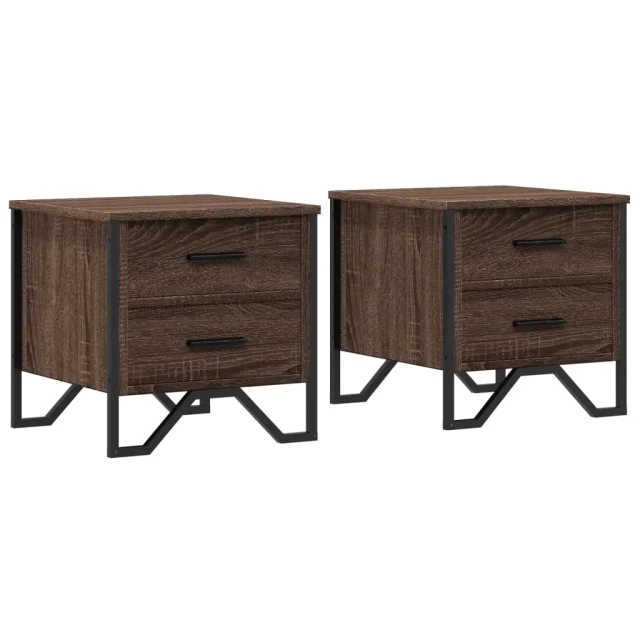 Dvo delni komplet Nočne omarice - Nočne mize rjavi hrast 40x41x40 cm inženirski les