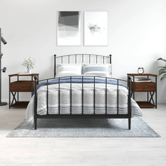 Dvo delni komplet Nočne omarice - Nočne mize rjavi hrast 40x42x55 cm inženirski les