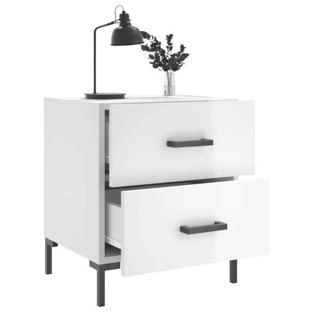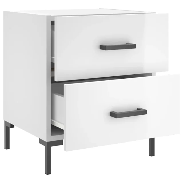 Dvo delni komplet Nočne omarice - Nočne mize visok sijaj bela 40x35x47,5 cm inžen. les