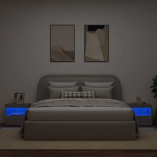 Dvo delni komplet Nočne omarice - Nočne mize z LED lučkami siva sonoma 50x40x45 cm