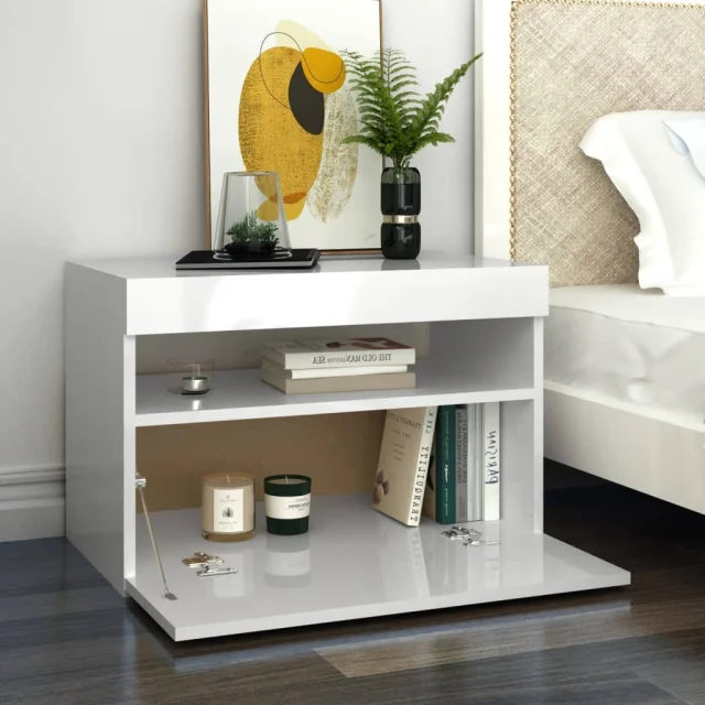 Dvo delni komplet Nočne omarice - Nočne mize z LED lučkami visok sijaj bela 60x35x40 cm