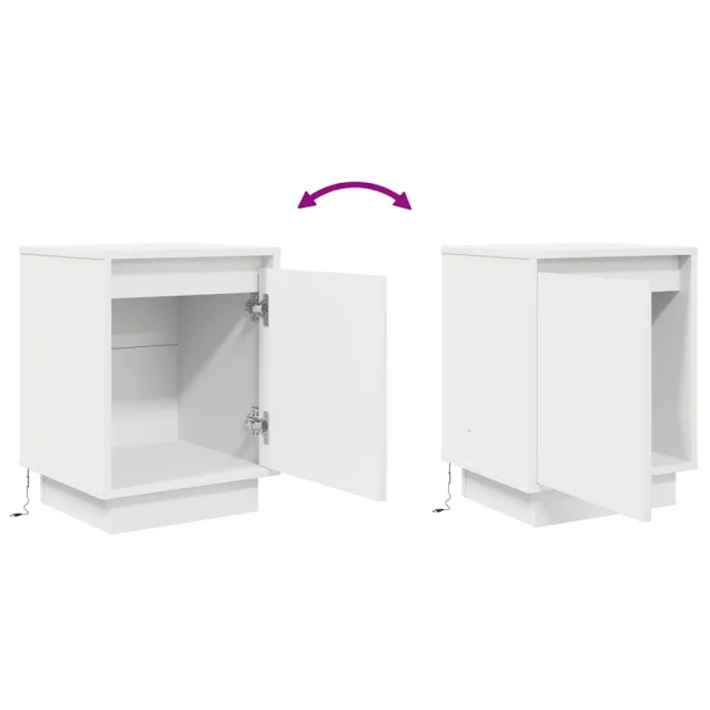 Dvo delni komplet Nočne omarice - Nočne mize z LED lučmi Bela 38x34x50 cm