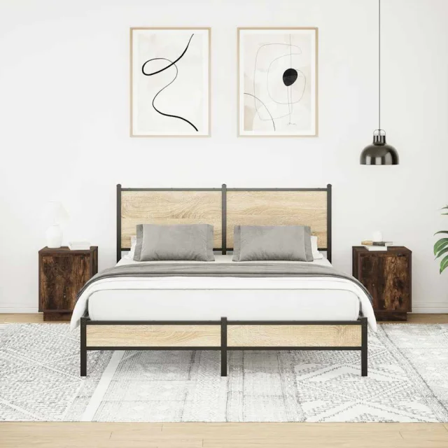 Dvo delni komplet Nočne omarice - Nočne mize z LED svetili Dimljen hrast 38x34x50 cm