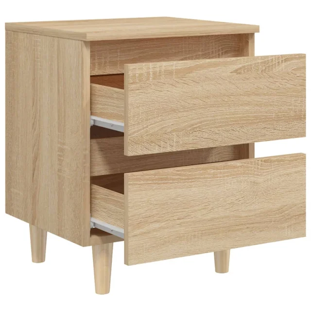 Ta nočna omarica s štirimi lesenimi nogami je stabilna in močna. Nočna omarica za spalnico je opremljena z dvema predaloma, ki ponujata veliko prostora za urejeno in organizirano shranjevanje stvari. Preprosto jo lahko očistite z vlažno krpo.