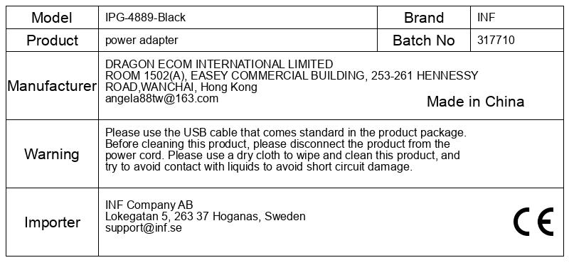 Tok: Največji polnilni tok je do 800 mA pri polnjenju krmilnika PS4. Največji polnilni tok je 400 mA na igralni krmilnik pri polnjenju dveh krmilnikov PS4 hkrati.