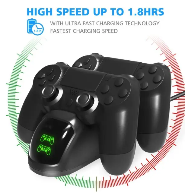 Polnjenje in shranjevanje: Ta dvojna polnilna postaja za PS4 ponuja priročno in varno polnjenje ter praktično shranjevanje, ki prihrani prostor v enem. Vgrajena vrata Micro USB pomenijo, da lahko v tej dvojni polnilni postaji varno shranite in polnite do dva krmilnika Playstation 4 hkrati.