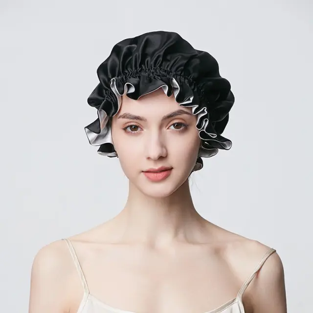 Dvojna svilena kapa za spanje - 100 % murvina svila Black