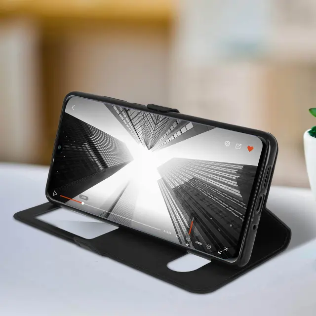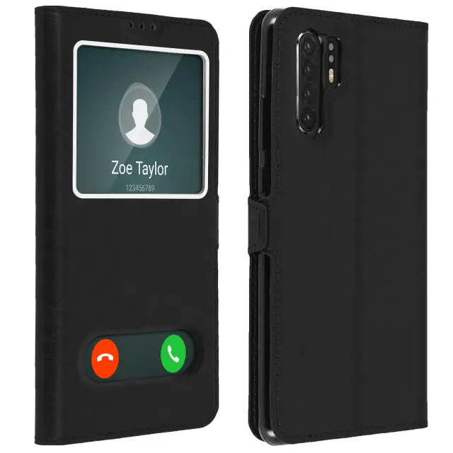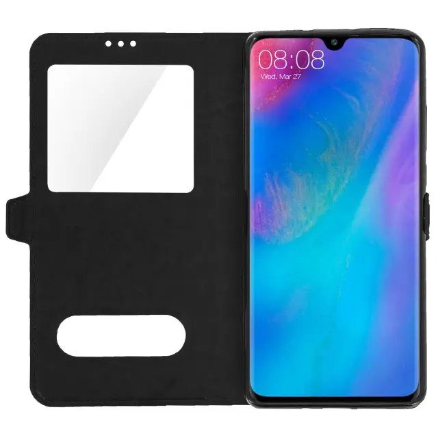 Zaščitni ovitek posebej zasnovan za Huawei P30 Pro. Popolnoma ščiti vaš pametni telefon pred vsakodnevnimi udarci in praskami. Trezen in eleganten dizajn s prevleko iz teksturiranega eko usnja. Velik zaslon za ogled obvestil, ure itd.