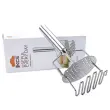 Trpežna dvojna konstrukcija: Dvojna nerjaveča glava zagotavlja hitro in enakomerno pretlačevanje krompirja, sadja in zelenjave. Dva sloja rešetke zdrobita sestavine učinkoviteje kot enoslojni modeli, kar zmanjša potreben pritisk in število ponovitev. Predstavljajte si pripravo pire krompirja za družinski obrok ali gladkih sadnih pirejev za dojenčka: z manj truda boste dosegli enakomerno, brezgrudasto teksturo, primerno za serviranje ali nadaljnjo predelavo v receptih.