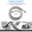 Proti zvijanju: Prosimo, upoštevajte: to niso originalni deli. Anti-kink in eksplozijsko odporna zasnova z fleksibilno nerjavečo pletenico in dvojnimi zaklepnimi priključki zmanjšuje tveganje zavijanja, upogibanja ali razpokanja pod pritiskom. Ta struktura zagotavlja neprekinjen pretok vode ter zanesljivo delovanje pri pogosti uporabi in mobilnosti v kopalnicah, hotelih ali najemnih enotah.