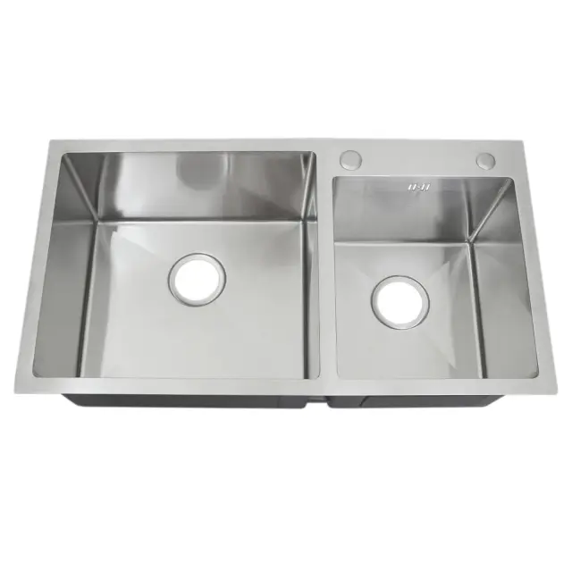* KuKoo dvojno pomivalno korito iz nerjavečega jekla, odporno proti koroziji, z osupljivim satenastim zaključkom.