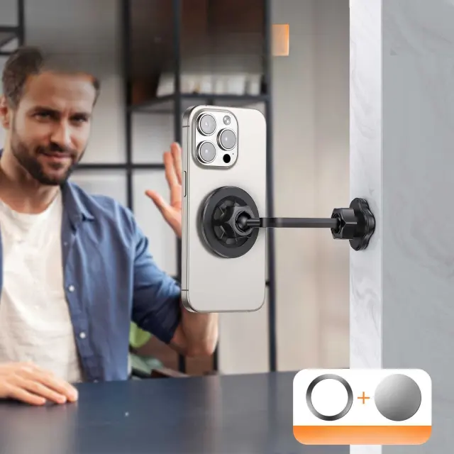 Vsestranska združljivost: Naše magnetno držalo je zasnovano za vrhunsko vsestranskost. 17-milimetrski vmesnik s kroglično glavo omogoča brezhibno združljivost s katerim koli standardnim nosilcem ali stojalom. Priloženi sta črna kvadratna in okrogla magnetna plošča, ki zagotavljata varno pritrditev v kateri koli smeri. Ne glede na to, ali uporabljate pametni telefon, tablični računalnik ali drugo napravo, to držalo zagotavlja stabilno in nastavljivo platformo.