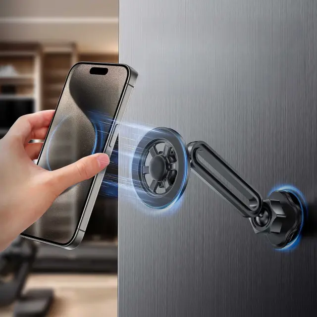 Močan magnetni oprijem: Izkusite neprimerljivo stabilnost z našim dvojnim magnetnim držalom, ki ima MagSafe dvojni obroč N52 magnet. Ta močan magnet zagotavlja varen in zanesljiv oprijem, ki zagotavlja, da vaša naprava ostane trdno na mestu, tudi na neravnih cestah ali med intenzivnimi aktivnostmi. 50-kratno povečana sesalna sila zagotavlja izkušnjo brez nihanja, kar vam daje mir med vožnjo ali delom.