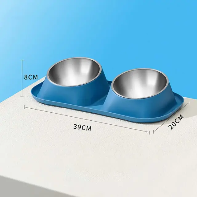 Dvoposteljna posoda za hišne ljubljenčke iz nerjavečega jekla za zaščito vratu Blue