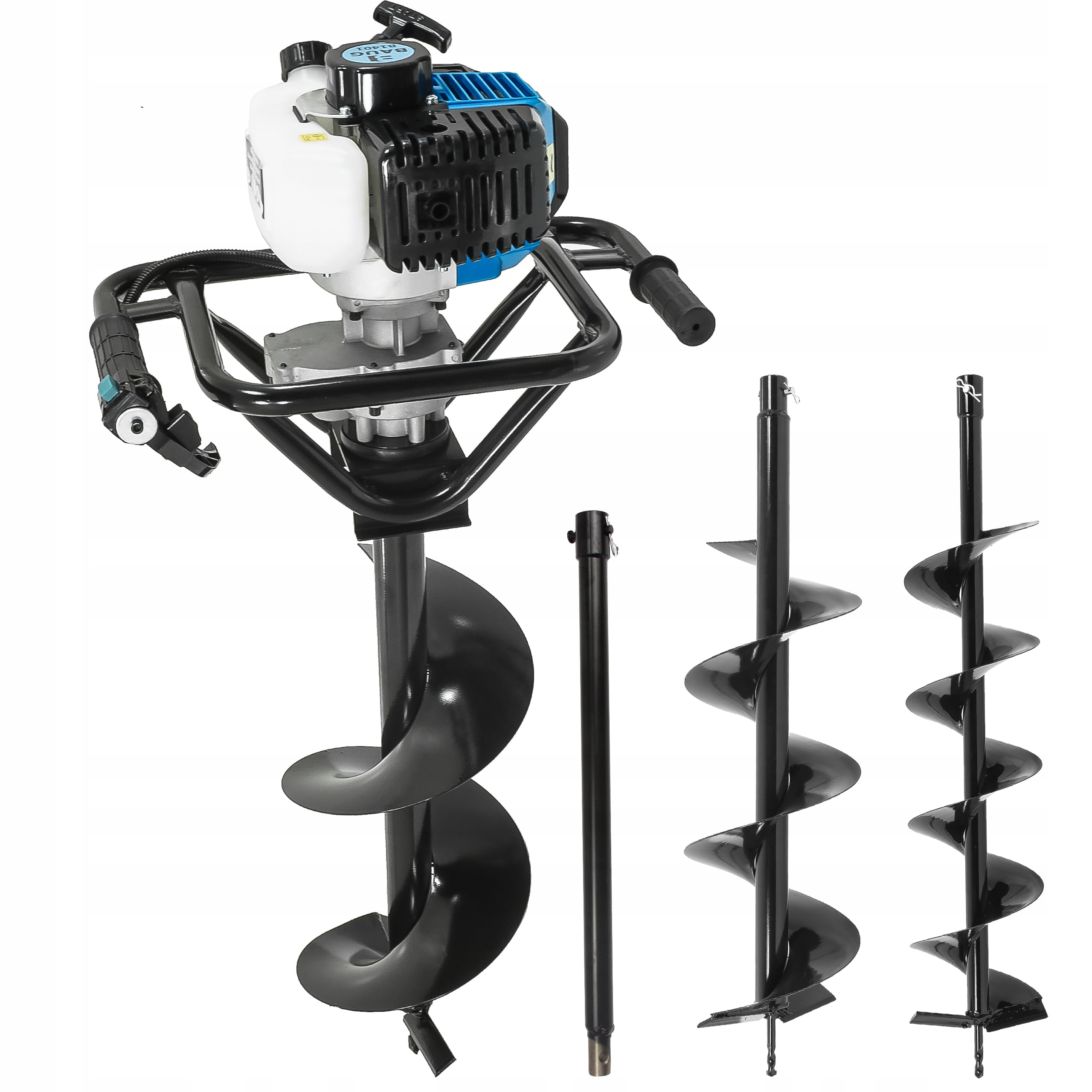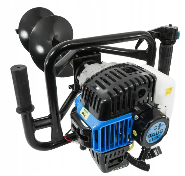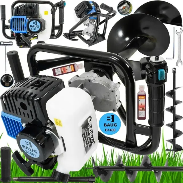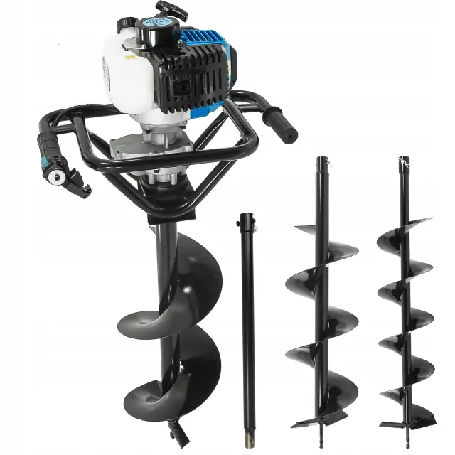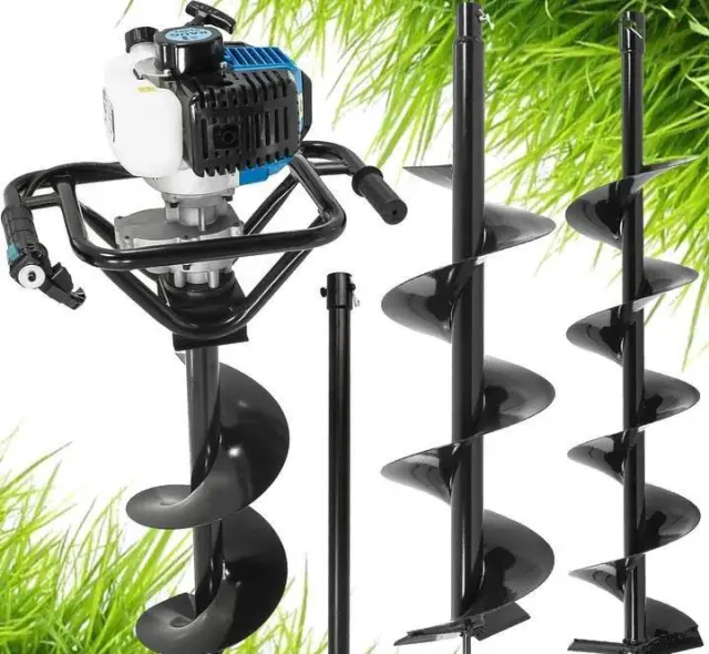 Dvoročni motorni zemeljski vrtalnik 5,2KM + 3 svedri 150-200-250mm je odličen pripomoček za vrtanjekenj v zemljo. Vrtalnik ima zmogljiv motor z močjo 5,2KM, ki zagotavlja učinkov vrtanje lukenj. Vrtalnik je opremljen s tremi svedri različnih velikosti (150-200-250mm), ki omogočajo vrtanje lukenj različnih premerov.
