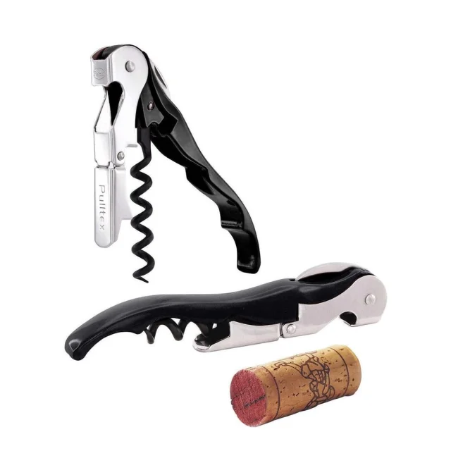 Dvostopenjski odpirač za steklenico Kelnar z etuijemi / črn / inox