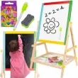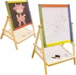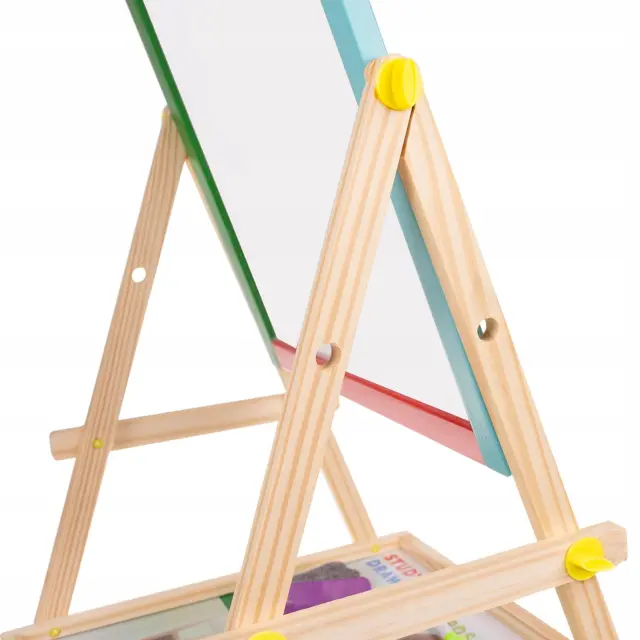 Lesena risalna tabla ima velikost 65 cm, kar vam daje dovolj prostora za ustvarjanje. Izdelana je iz trpežnega lesa, ki zagotavlja dolgo življenjsko dobo izdelka. Tabla je opremljena z dvostransko površino, kar pomeni, da lahko risate in pišete tako na črni kot na beli strani.