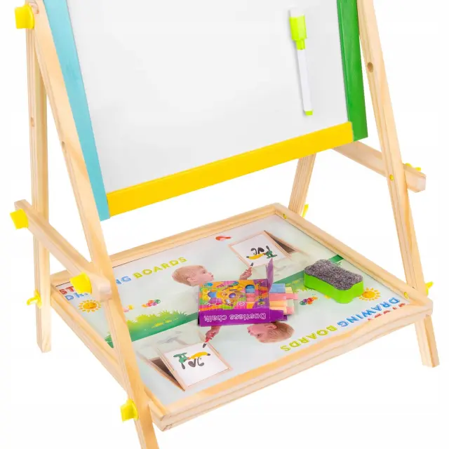 Ne glede na to, ali ste umetnik, ki želi ustvarjati čudovite slike, ali otrok, ki se želi zabavati s risanjem, bo ta lesena risalna tabla postala nepogrešljiv del vaše ustvarjalne poti. S svojo kakovostno izdelavo, prostornostjo in priloženimi kredami bo ta izdelek prinesel navdih in kreativnost v vaše umetniške projekte.