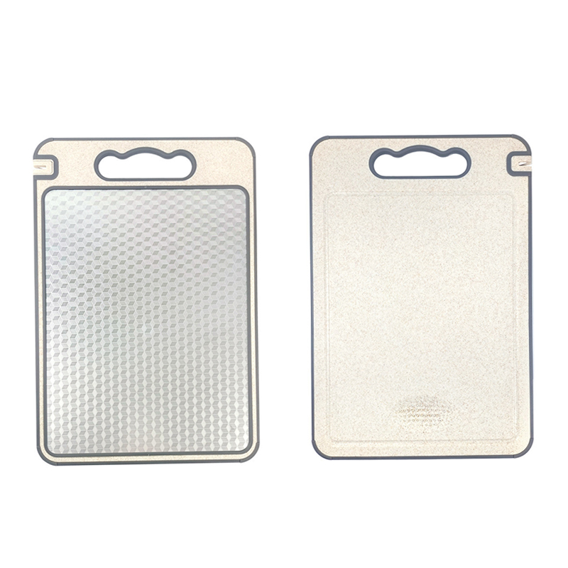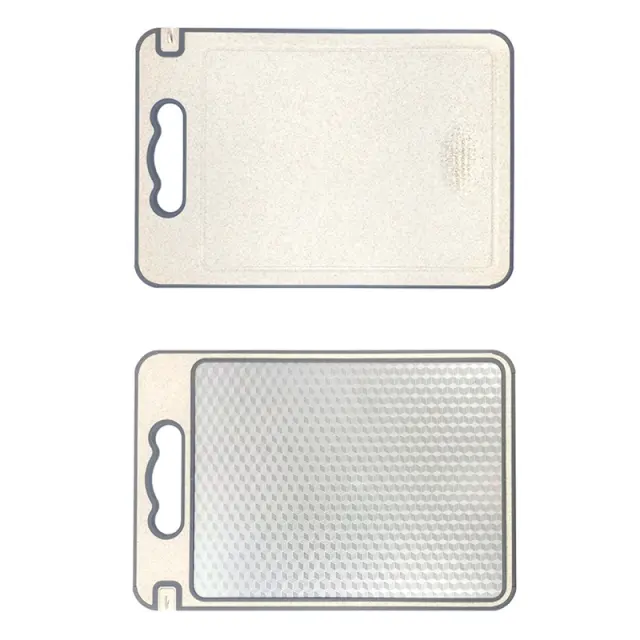 Dvostranska zasnova: Ta dvostranska rezalna deska ima stran iz nerjavečega jekla, ki je idealna za meso in ribe, ter stran iz pšenične slame, ki je kot nalašč za zelenjavo, sadje in kruh. Ta dvostranska zasnova preprečuje navzkrižno kontaminacijo in ponuja vsestranskost za vse vaše potrebe po rezanju.