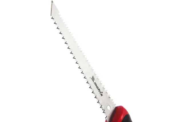Žaga za žaganje suhomontažnih plošč je izdelana iz visoko trdnih materialov. Zaradi posebnosti rezila lahko obdelovanec žagate tako, da ga premikate proti sebi ali stran od sebe, kar zagotavlja udobje pri delu v omejenem prostoru.