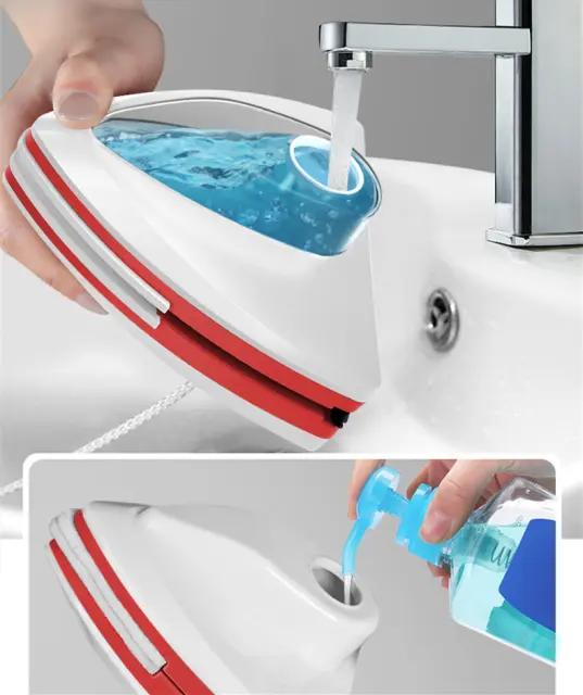 Enostaven za uporabo: To čistilo za okna je enostavno in priročno uporabljati. Napolnite posodo z vodo in želenim detergentom, pritrdite varnostno vrvico in začnite s čiščenjem. Močni magneti zagotavljajo, da oba dela ostaneta varno povezana skozi steklo.