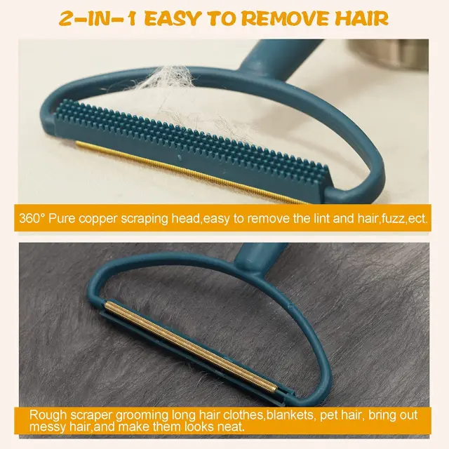Ena stran je izdelana iz čistega bakra in lahko hitro odstrani dlake, dlake in dlake. Druga stran z okroglimi krtačnimi glavami poravna tekstilno površino.