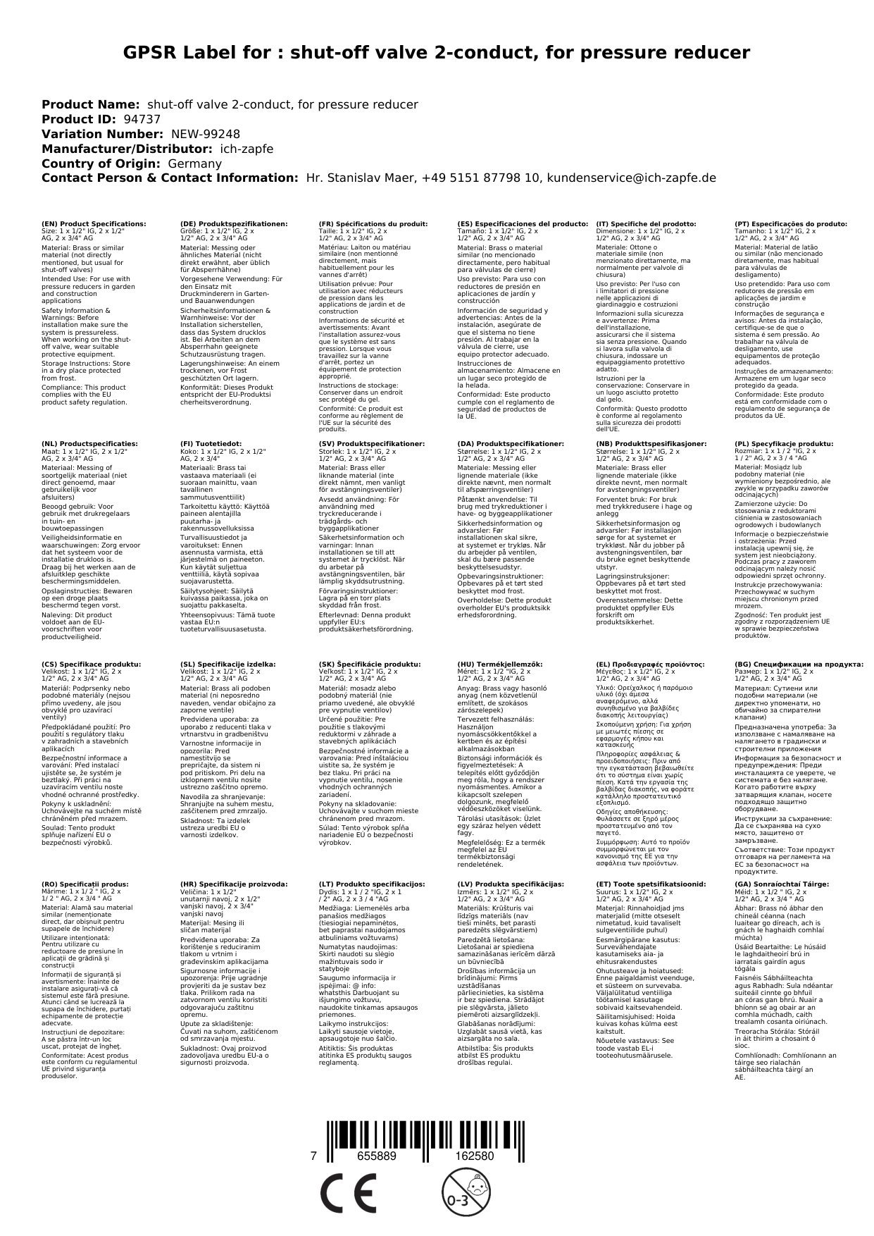 Podatki o proizvajalcu vključujejo informacije (naziv, naslov, državo in elektronski naslov) povezane s proizvajalcem izdelka.