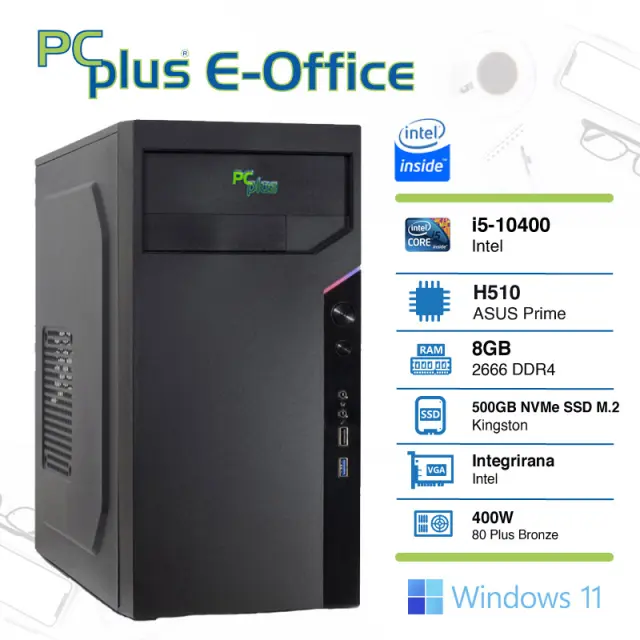 PCPLUS e-office i5-10400 8GB 500GB NVMe SSD Windows 11 Home namizni računalnik